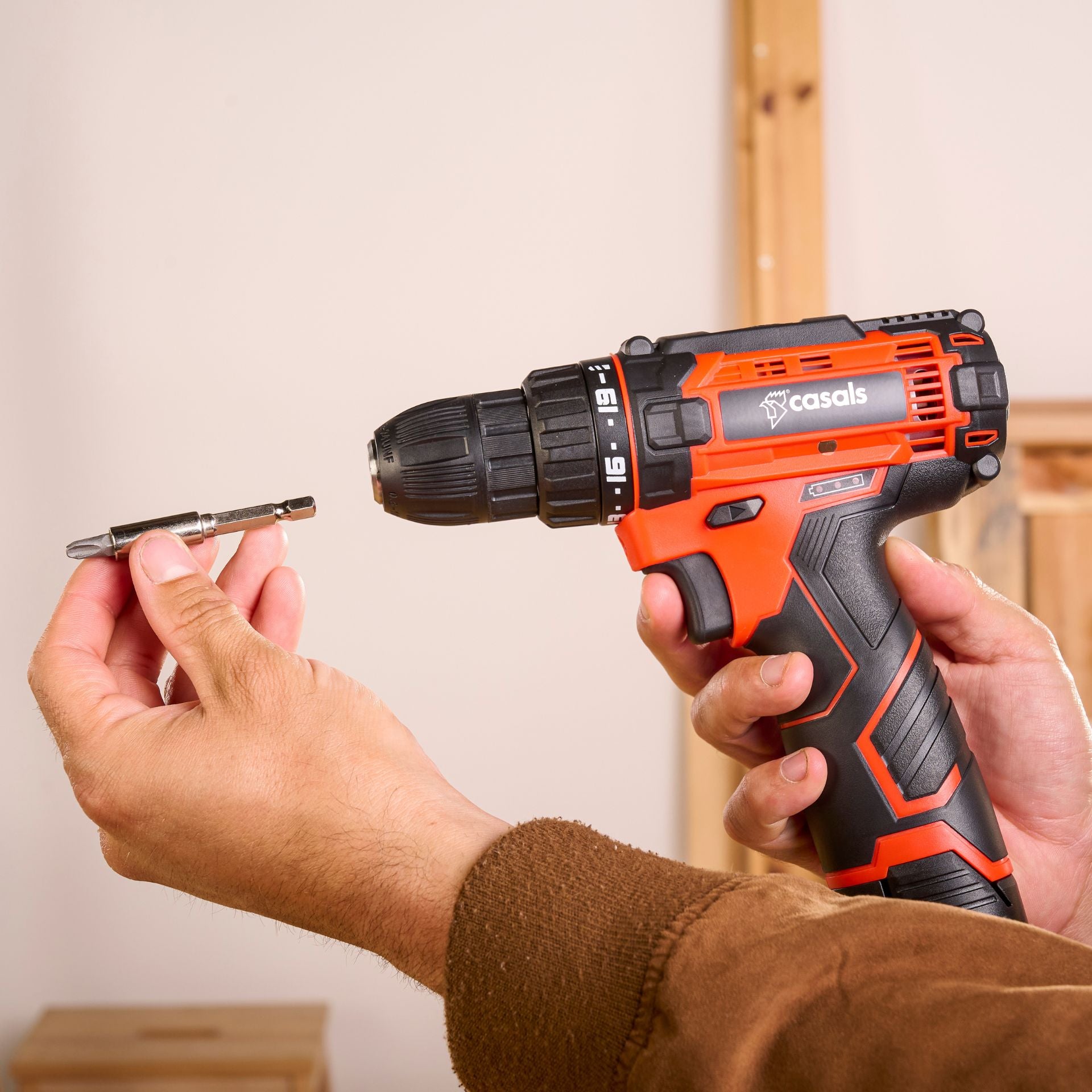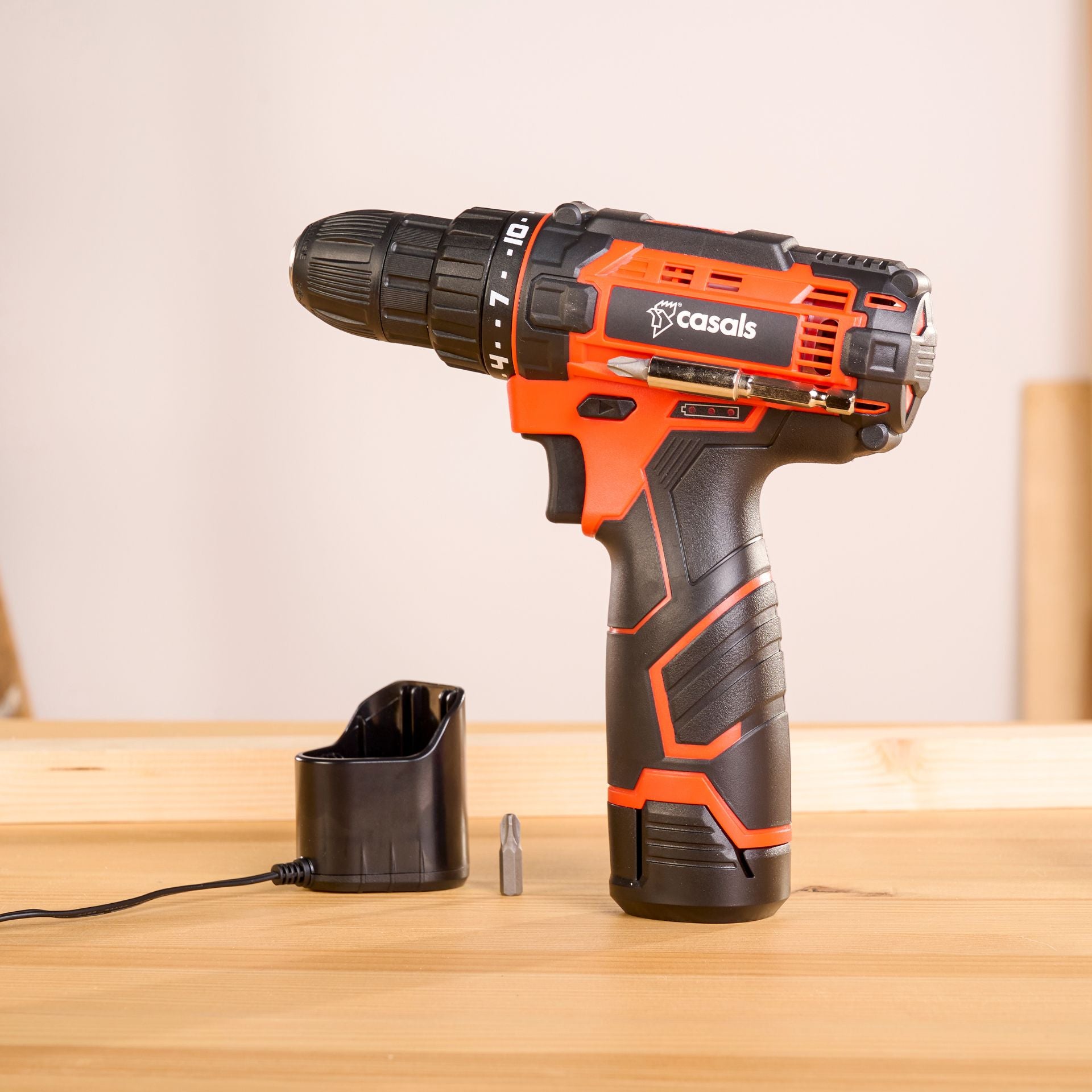 The CSC1205BC cordless drill driver incorporates 2 functions: screwdriver and drill. The screwdrive function is designed to fix screws and has 19 different tightening torque positions, and the drill function is designed to drill into wood or any other soft material such as plasterboard.