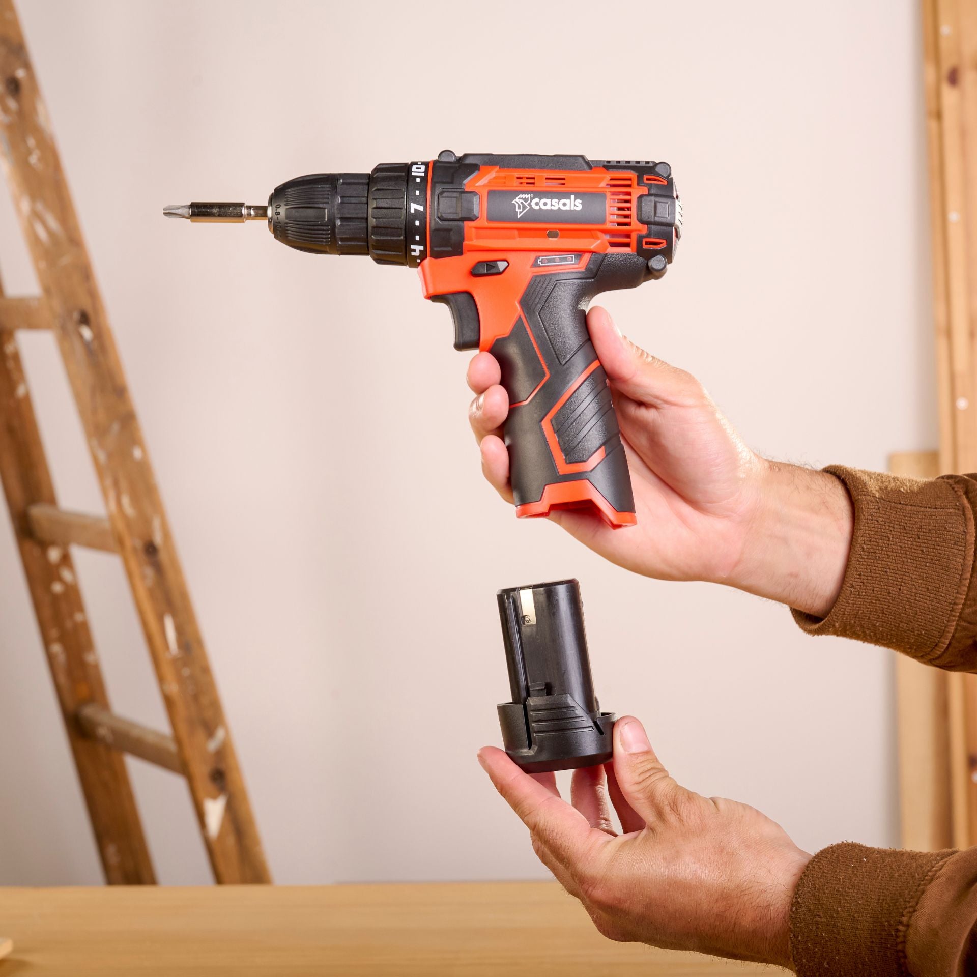 This cordless drill has a completely ergonomic design that fits in your hand. In addition, the entire handle is covered in silicone to prevent slipping, even if your hand is sweaty.