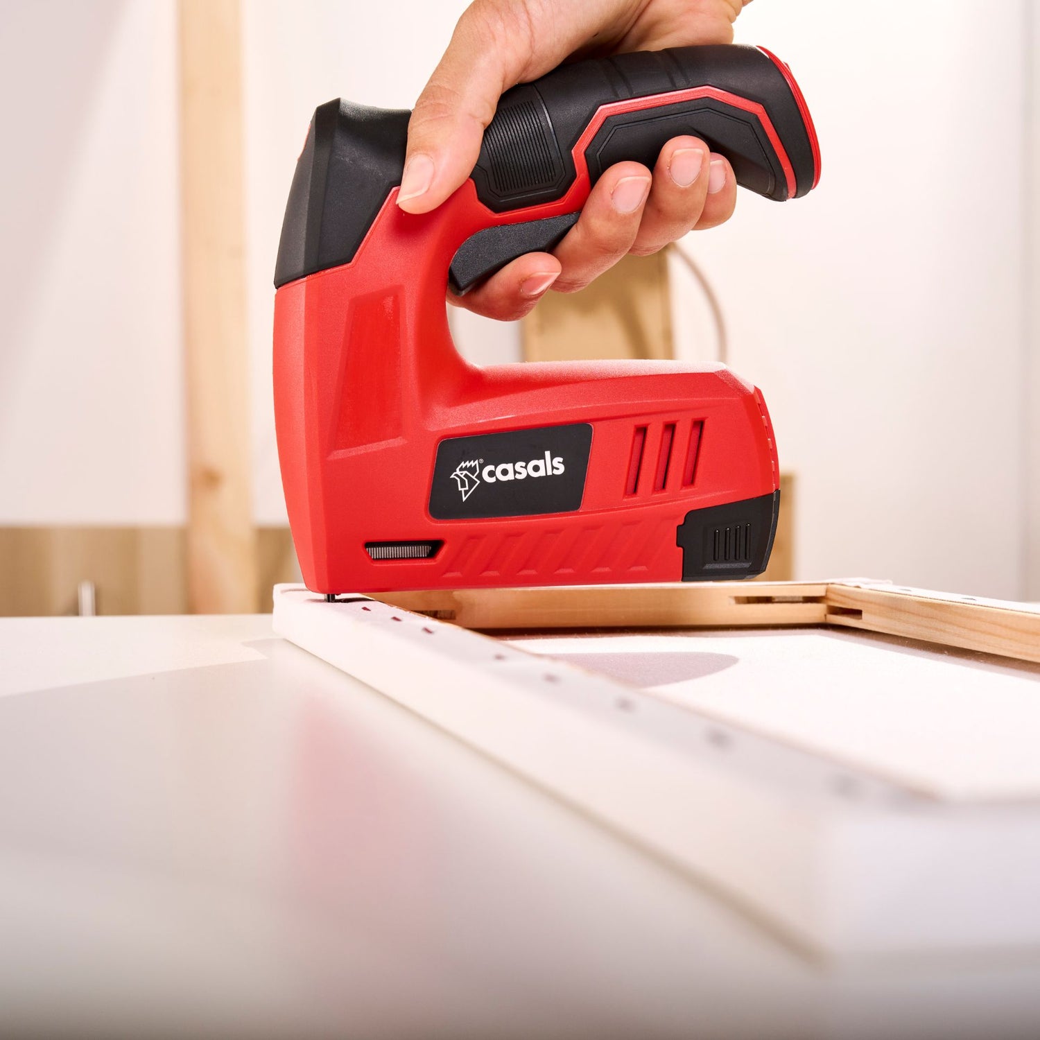 La grapadora CSG3620 de Casals funciona con una batería interna de litio de 4V y 1300mAh, que la dotan de fuerza más que suficiente para clavar clavos y grapas de una sola vez. Olvídate de los líos con los cables o de tener que estar pendiente de dónde están los enchufes o los alargos.