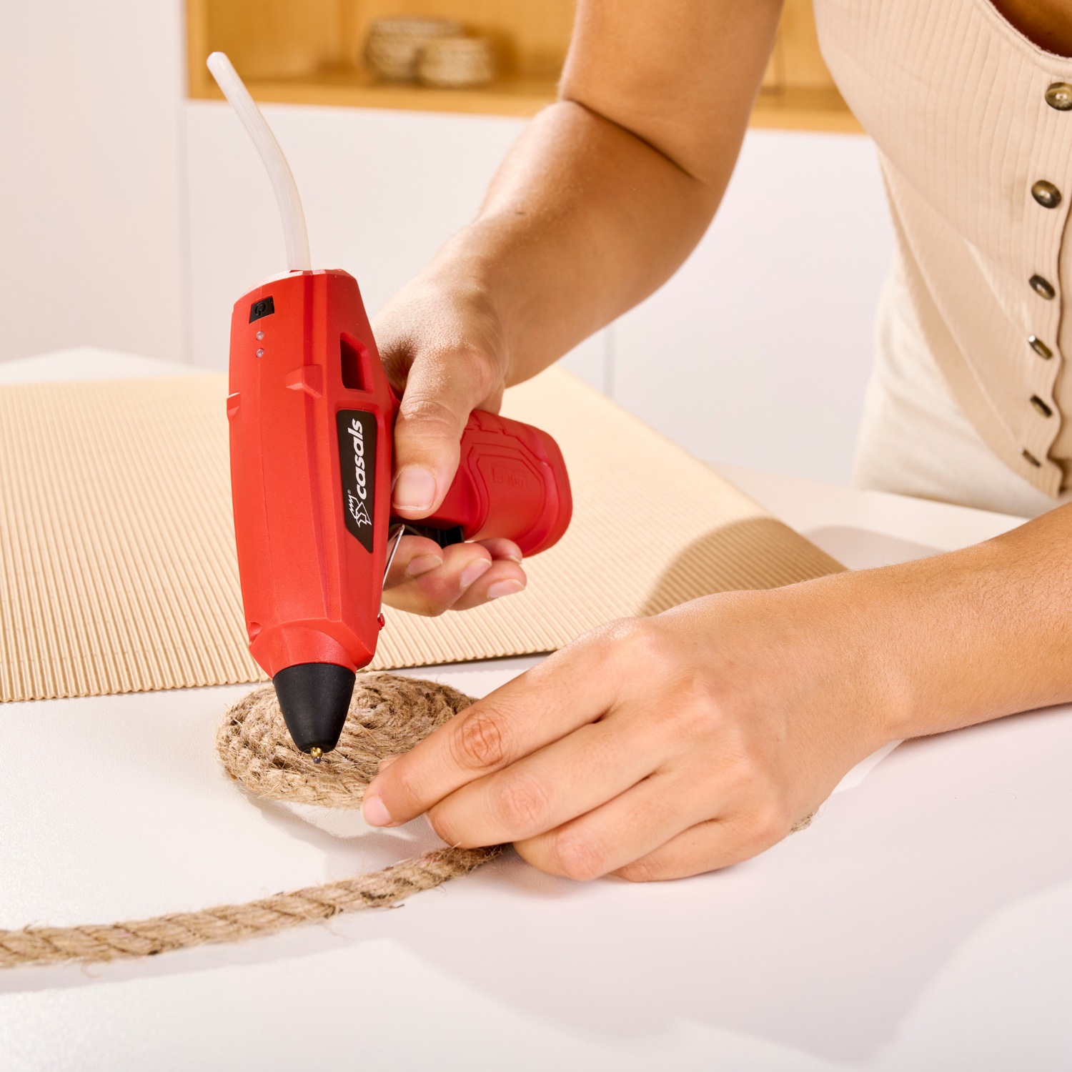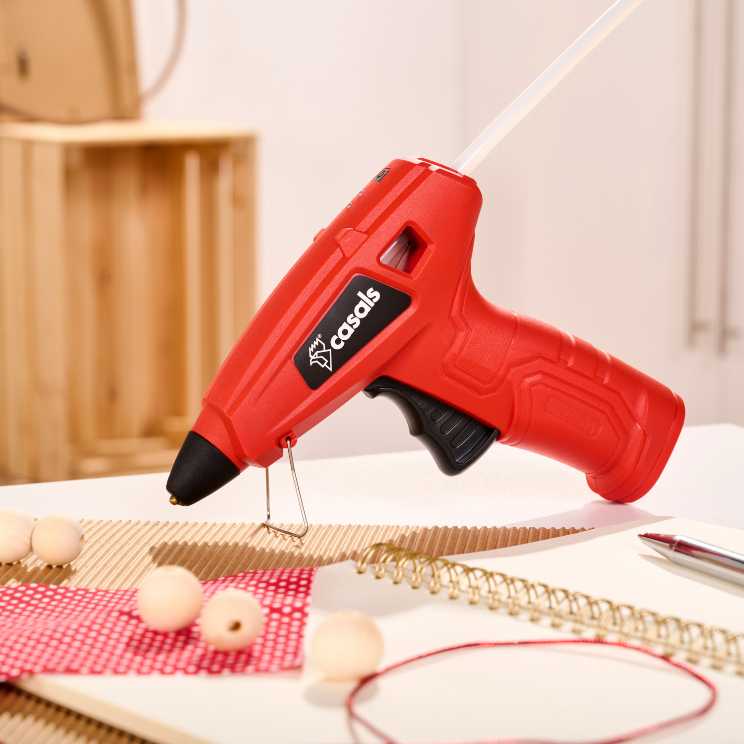 La pistola de pegamento de Casals incluye un sistema anti goteo para evitar ensuciar y además solo funde la silicona a medida que se aprieta el gatillo, evitando la merma innecesaria de cola. Su pitorro de salida de pegamento te permitirá colocar la cola justo en el lugar que la necesitas y con el volumen que necesitas, evitando así aquellos molestos pegotes.