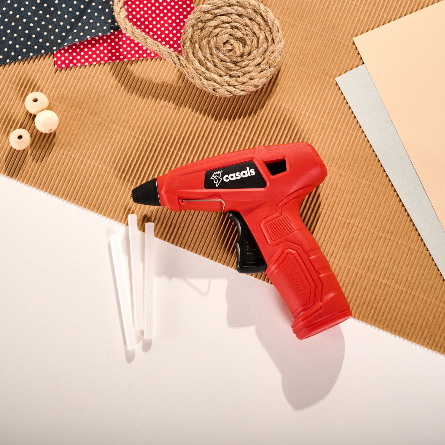 Pistola de silicona con batería de litio de 4V y 1300mAh. Sin cables, para una total libertad de movimientos. Es la pistola de silicona perfecta para bricolaje, trabajos de decoración, DIY y manualidades de todo tipo. Su calentamiento hasta 180ºC es ultra rápido en tan solo 15 segundos, no gotea y se apaga automáticamente tras 5 minutos sin usarla.