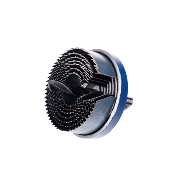 Broca de sino projetada especificamente para fazer furos grandes, com uma broca central de 18 mm e 7 lâminas de corte concêntricas, que podem ser removidas para fazer o furo tão grande ou tão pequeno quanto você desejar.