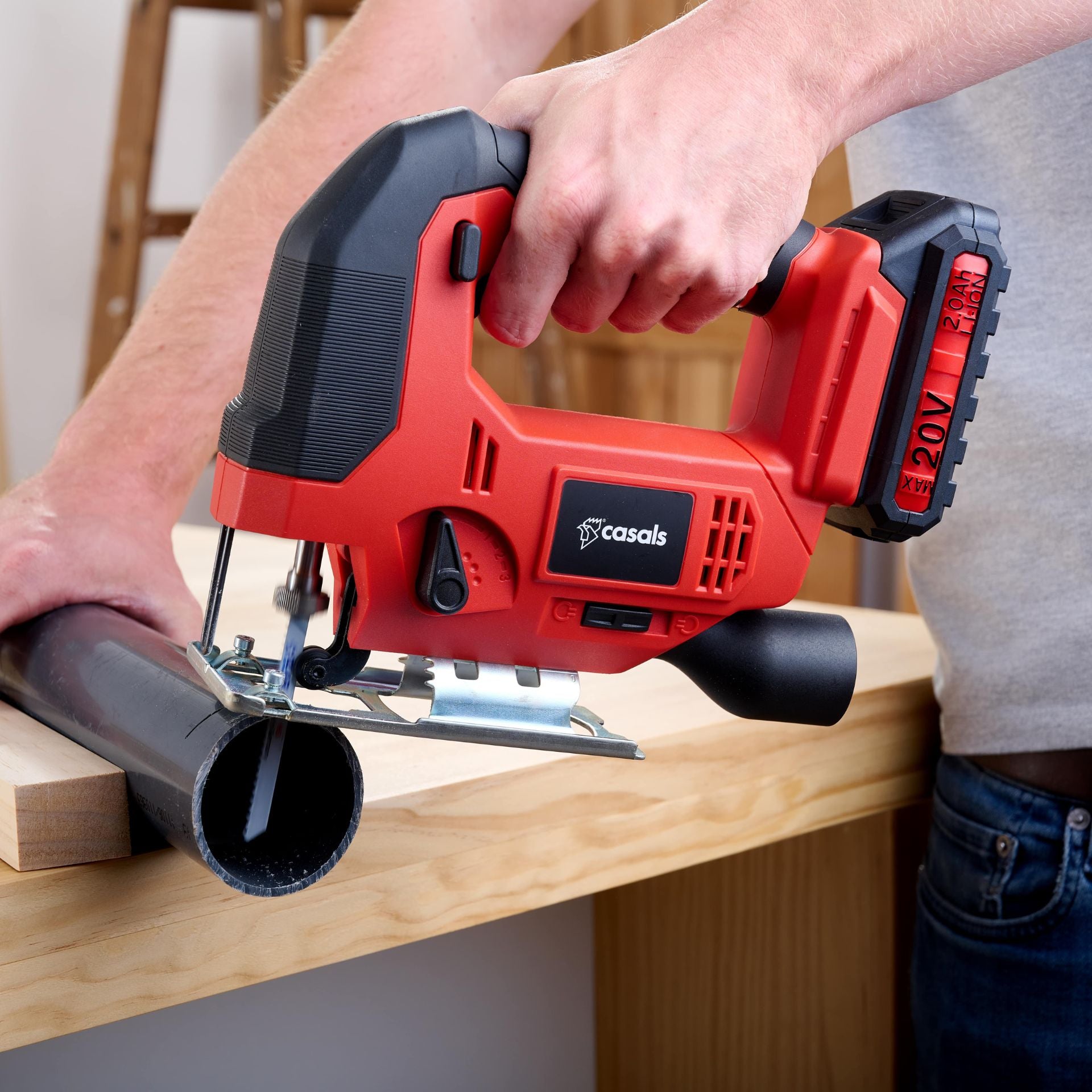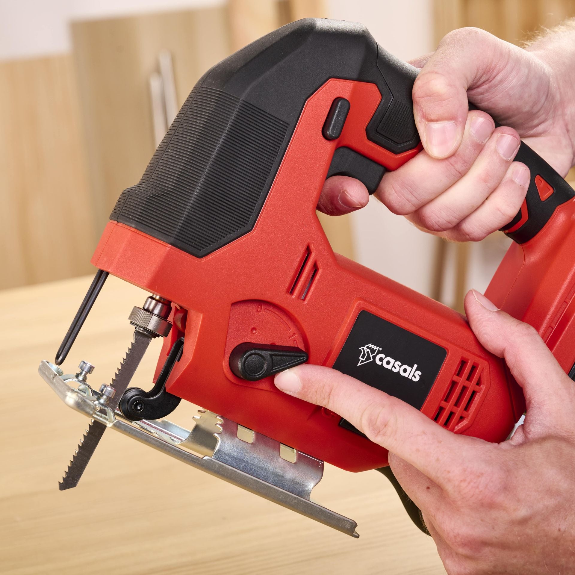 La sierra caladora sin cable CJS2050 incluye un botón de seguridad que debe ser presionado a la vez que el gatillo, para evitar así que se active de manera accidental. Este activador está en ambos laterales por lo que es una sierra perfecta para ser usada tanto por diestros como por zurdos.