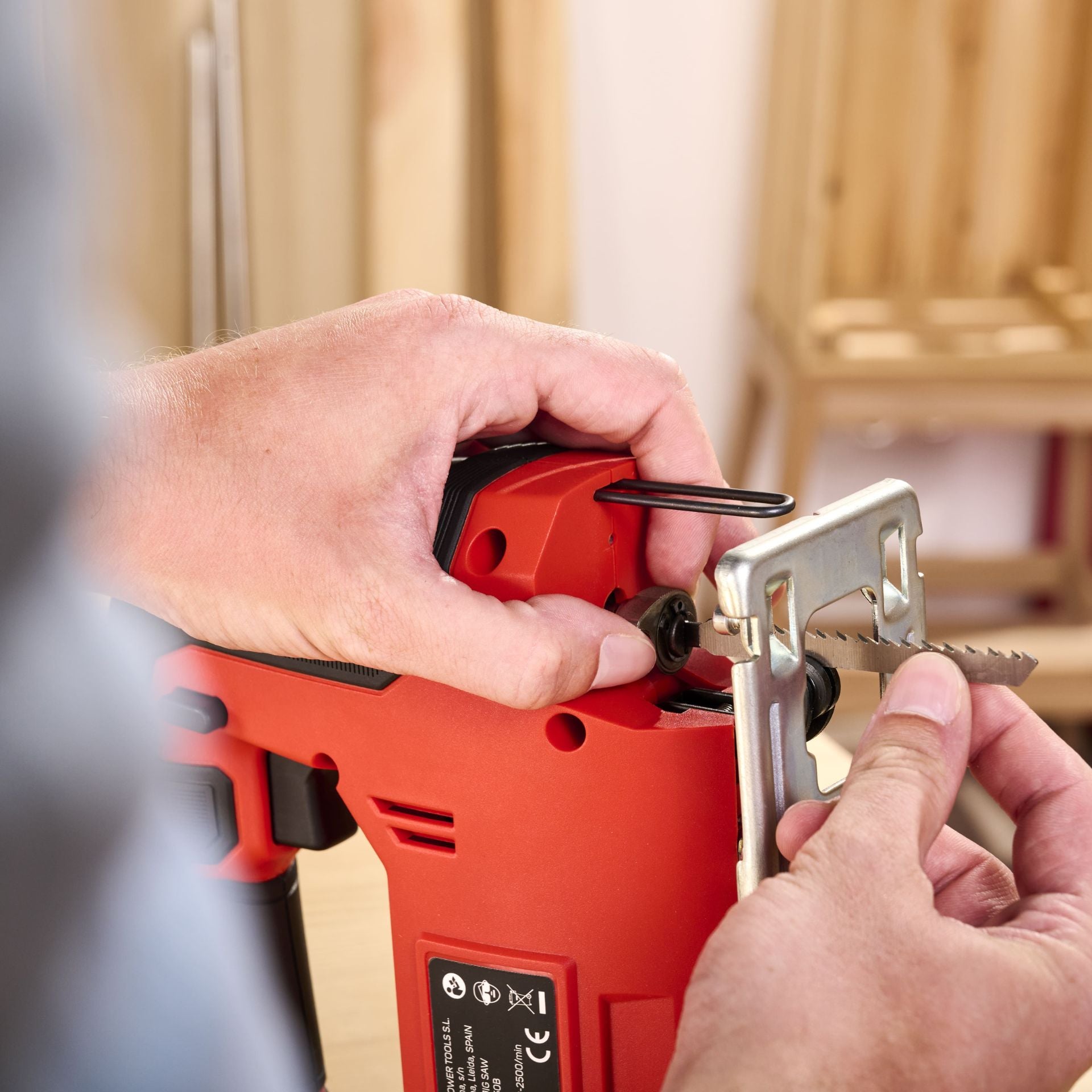 CJS2050 tiene una velocidad máxima de 2500rpm, que se regula a través del gatillo accionador. Esto te permite controlar al máximo la calidad del corte en los casos en que necesites resultados perfectos, o en aquellos cortes curvos. Si lo que quieres es un corte rápido puedes accionar la función pendular en 3 niveles distintos. La sierra tiene una longitud de carrera de 19mm. Corta hasta 65mm en madera y 8mm en metal.
